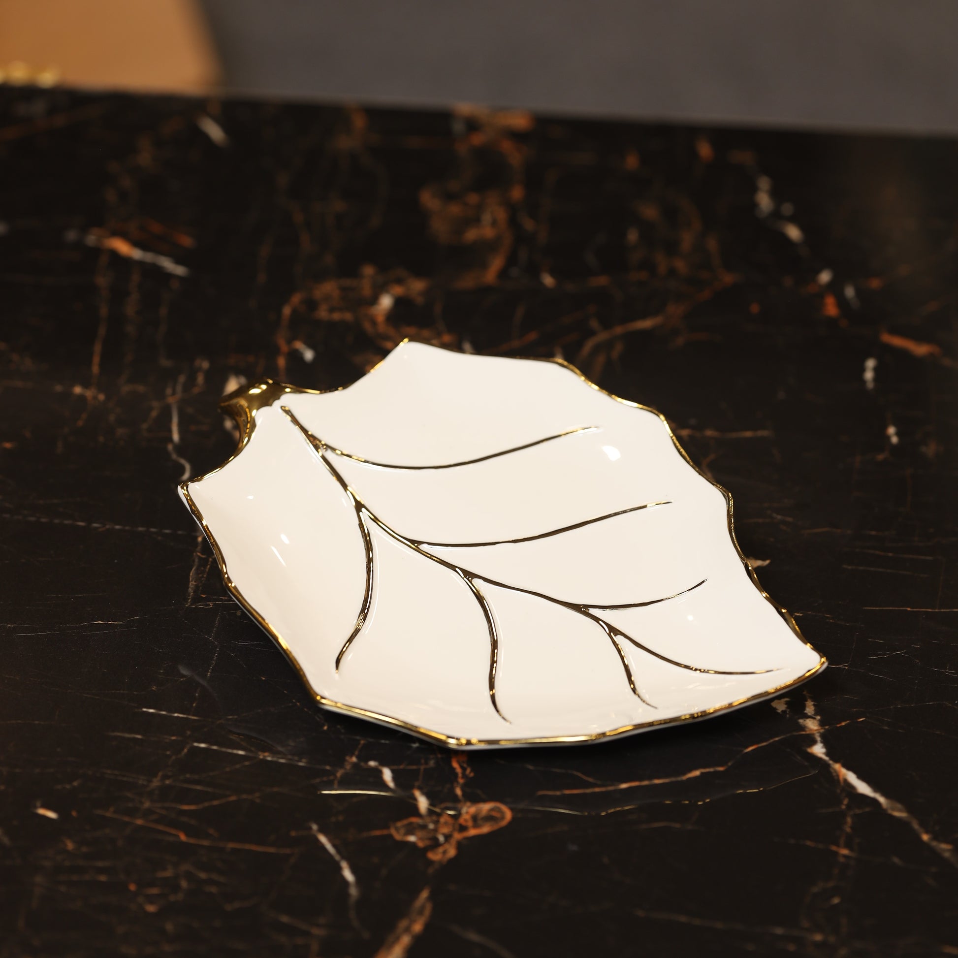 Ceramic leaf bowl, silver border, serving and decoration bowl